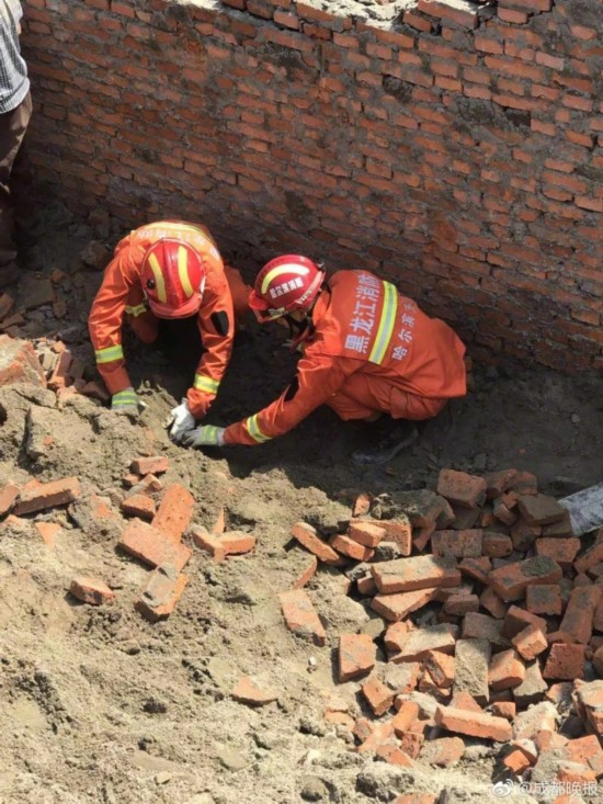 现场视频显示,一栋红色建筑前方有一建筑工地,工地上堆砌着红砖,旁边有一大型挖机,工地上有多名消防人员和戴着安全帽拿着铁锹的建筑工人。另有现场图片显示,两名身穿黑龙江消防制服的消防人员正在施救,用手在刨堆积的泥土砖块。网友反映称,系哈尔滨香坊区德强学校在建工地倒塌。
