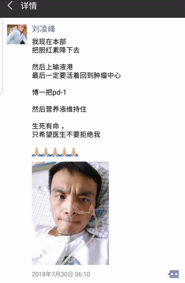 胃癌晚期,刘凌峰的病情并不乐观。但在微信朋友圈,刘凌峰传递给大家的都是积极乐观的心态。