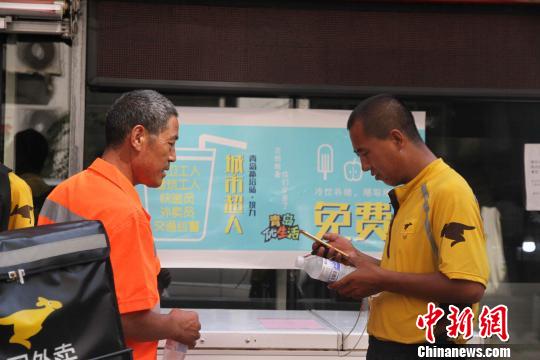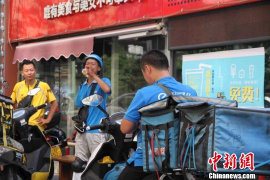 外卖员畅饮领取的冷饮。胡耀杰 摄