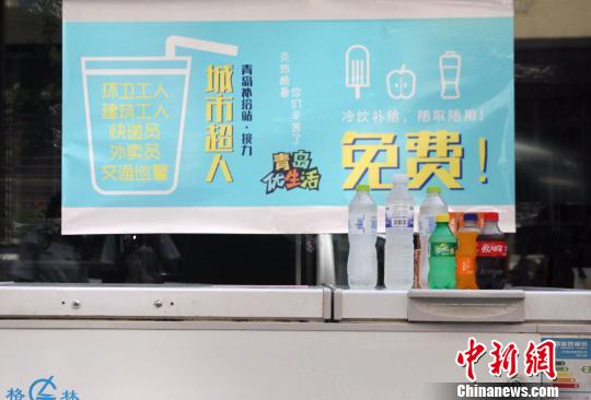 中新网青岛8月3日电 (记者 胡耀杰)进入“三伏”天的青岛异常闷热,相关部门持续发布“高温黄色预警”,青岛部分地区最高气温超35℃。近日,一台无人看管的冰柜现身青岛街头,为这苦闷的夏日送来阵阵“清凉”正能量。记者3日对其进行了实地探访,看见冰柜里装有矿泉水等各类饮料……环卫工人、外卖员等在高温下工作的人们可从冰柜中免费自取。