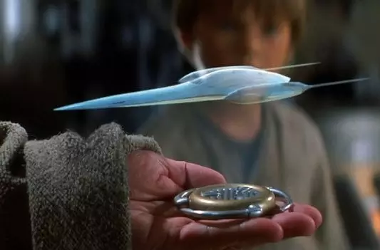 电影《星球大战前传1》中,奎刚·金启动飞船。