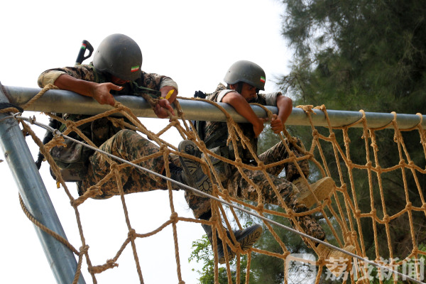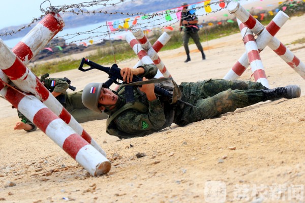 国际军事比赛-2018海上登陆赛,已完成障碍赛的比赛,在接下来的两项比赛中,求生赛因其沼泽遍布、地形复杂,被称为“死亡越野”。整个赛段总长约4公里,要求各班参赛队员在高温下负重30斤,沿规划路线完成12个障碍项目。