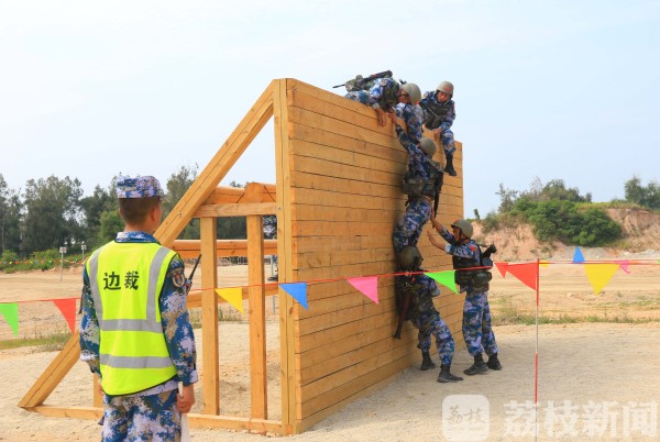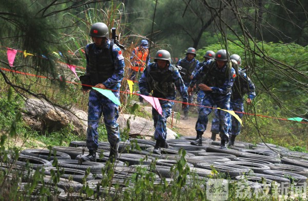 中国参赛队员通过低桩铁丝网。孙宏韬摄
