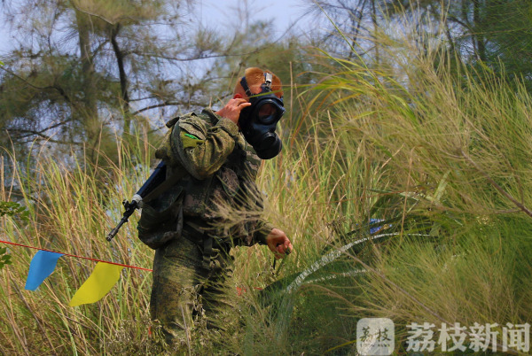 俄罗斯队员穿戴防毒面具(尚文斌摄)