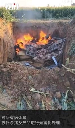 当地扑杀疫点内913头生猪并做无害化处理。《我们视频》截图