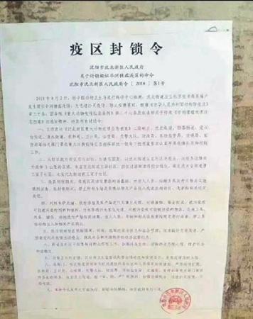 昨日,农业农村部新闻办公室发布,辽宁省沈阳市沈北新区发生一起生猪非洲猪瘟疫情,这是我国首次发生非洲猪瘟疫情。农业农村部有关负责人说,目前,该起疫情已得到有效控制。
