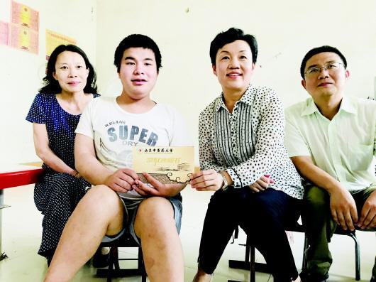 3日下午,当山东中医药大学副校长田立新将大学录取通知书和5000元的资助金及慰问品交到济阳男孩赵守杰手里时,这个男孩悄悄红了眼眶。