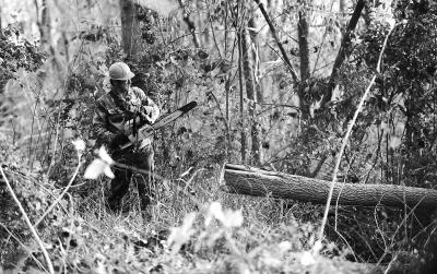 在位于湖南沅江市的南洞庭湖自然保护区核心区内,一名工作人员在清理欧美黑杨(2017年11月27日摄)。新华社记者 李尕摄