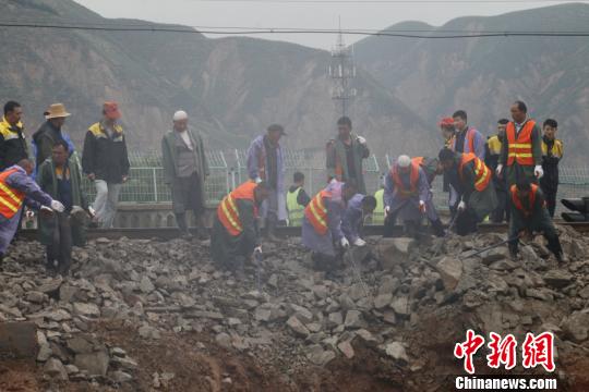 图为中铁兰州局集团公司职工在水害现场开展抢修工作。宋佳龙 摄