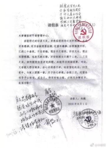 这两天,贵州省印江自治县一位扶贫干部的请假条在朋友圈火了。