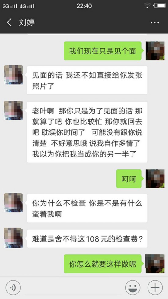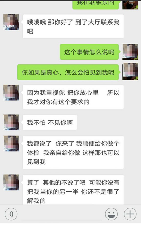 据武洪介绍,今年5月,一位自称在昆明军都339医院工作的女子“刘婷”,通过微信“附近的人”主动加他好友,随后以可以“交往”为名,让武洪先去昆明军都339医院体检,以保证“交往”前身体健康。