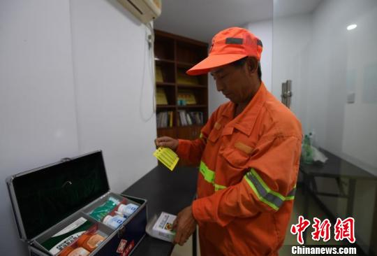 “别看这个急救箱虽然不大,但是‘五脏俱全’,一般的胃药、感冒药、防暑药、清凉油都有。”望江环卫所所长胡建生介绍,平时每天他们还会给环卫工人发放冰的矿泉水、防暑药品。“一般环卫工人们需要什么我们还会再添置,让他们感受到一点家的温暖。”