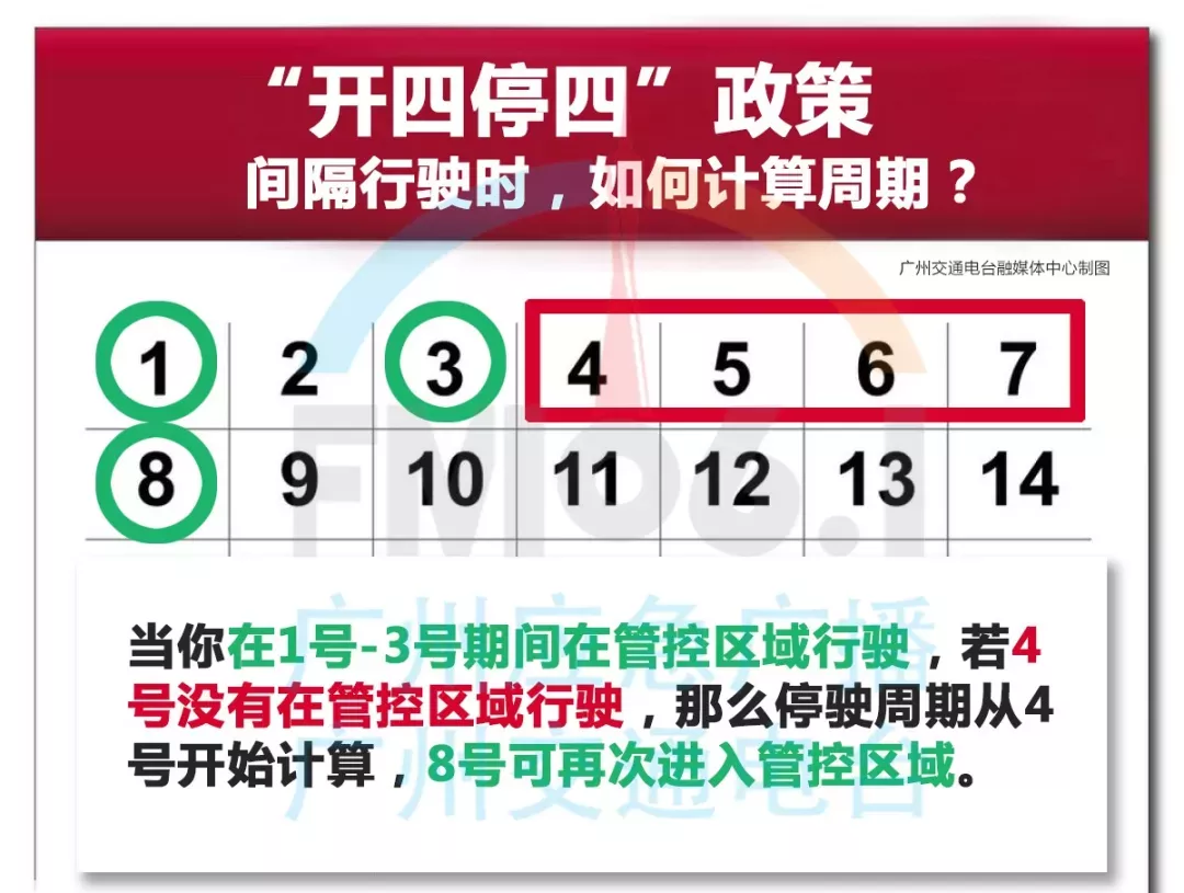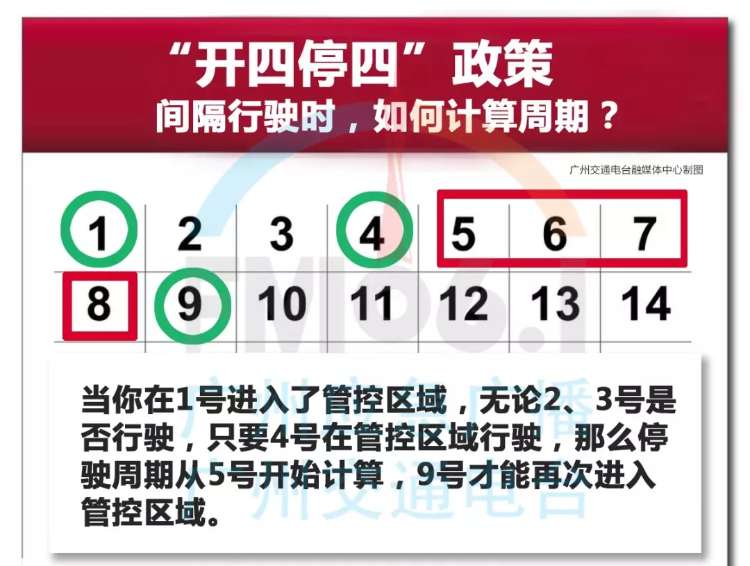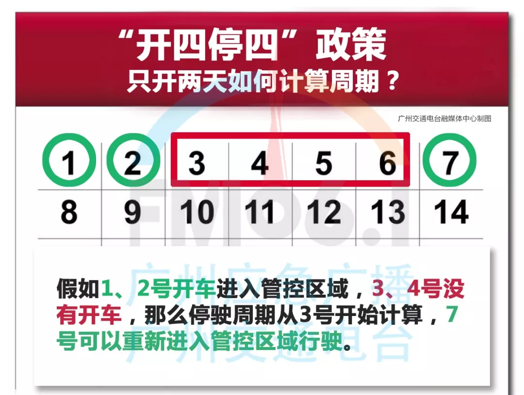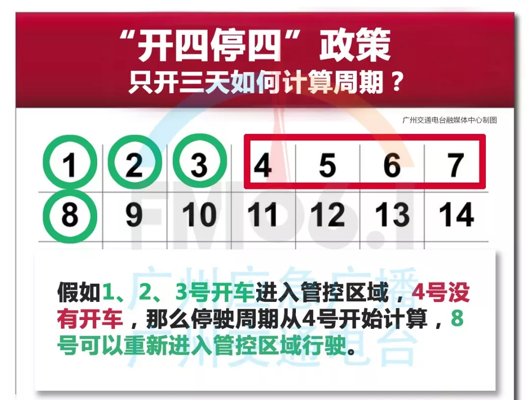 解释:比如1234号开,5号继续开就违规了,那就要6789日停够四天,10号才可以再开了。简单来说就是不能以罚代停。该罚的罚完之后,改停的还是要停够!