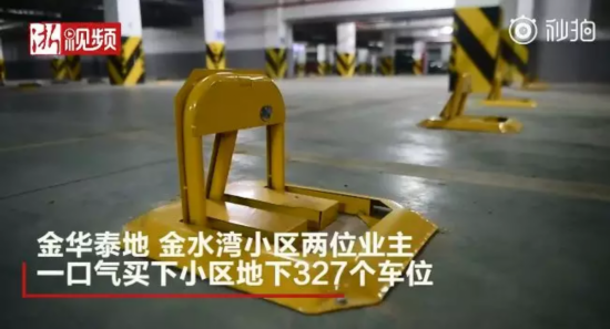 据媒体报道,浙江金华某小区的两位业主近期一口气买下了车库内的327个停车位,几乎占到了总车位数的一半,并统一装上了地锁。而小区内居民则是在看到地锁后,才发现这一情况。