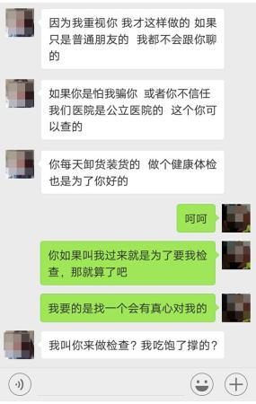 据武洪介绍,今年5月,一位自称在昆明军都339医院工作的女子“刘婷”,通过微信“附近的人”主动加他好友,随后以可以“交往”为名,让武洪先去昆明军都339医院体检,以保证“交往”前身体健康。