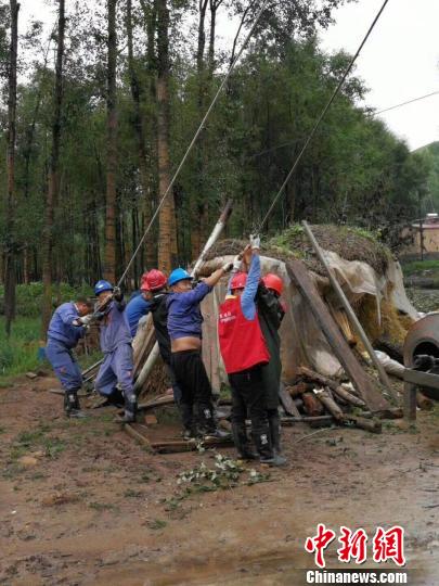 中新网西宁8月4日电 题:青海东部暴雨侵袭“红马甲”一线保供电