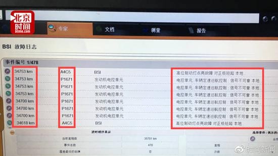 毛先生的车开了3.5万公里左右,他称检测到的故障都有发生时对应的公里数。