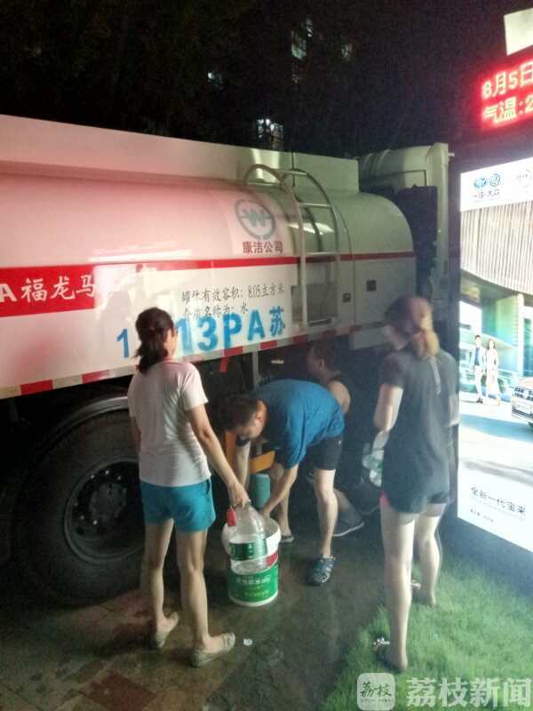 昨天(4日)晚上,南京仙林学海路鸿运嘉园小区突然停水,这给小区内近千户居民生活带来了极大的不便。在停水期间,该小区门口的一辆洒水车临时为居民提供用水的送水车。