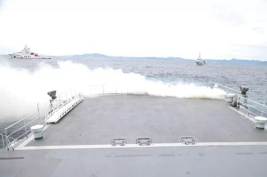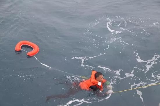 上级通报:南海某海域,执行某项战备任务的红方兵力遭蓝方突然袭击,造成一艘舰艇起火失去动力和一架战机坠海,部分舰员落水,两名飞行员跳伞漂浮海面,等待救援!这是近日,南海舰队某防险救生支队组织海南省海事局、解放军425医院等军地单位进行的一场联合搜救演练。
