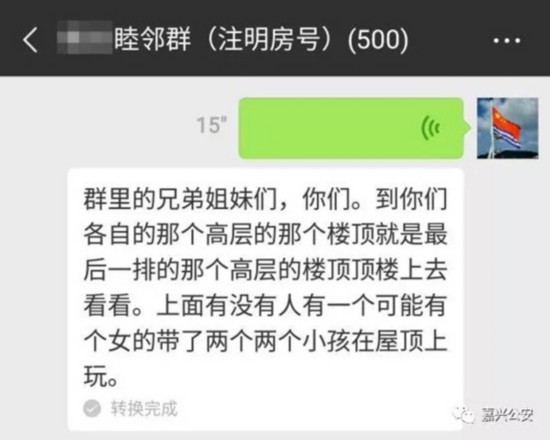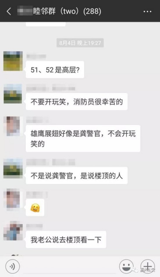 他马上在该小区业主群发送消息,请小区住户帮忙上楼查看情况,而自己也马上和同事们分头行动,赶往最有可能是轻生女子小陈所在的两幢楼楼顶查看。