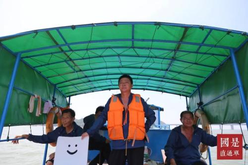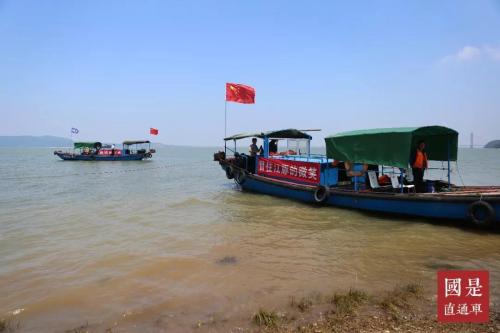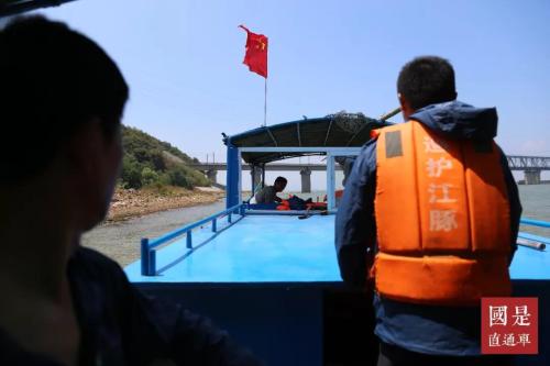 湖口县是全国首个江豚保护协助巡护示范点。中新社国是直通车记者今天探访湖口协巡队,其船上挂着“留住江豚的微笑”的横幅。