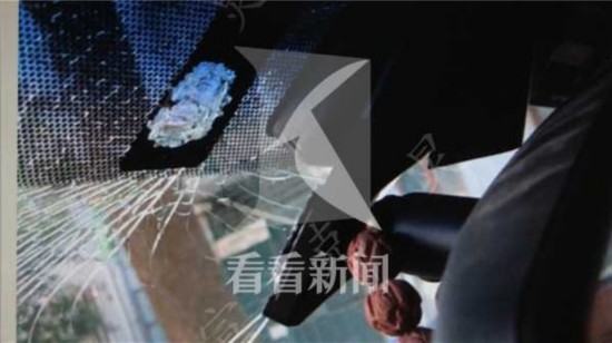 他第一时间去保安监控室查看监控,发现自己的轿车是被一件从高空坠落的不明物体砸到的。挡风玻璃碎裂、后视镜脱落。