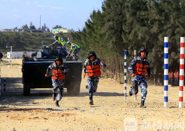 接力赛比赛用车均为中方提供的05式两栖装甲步兵战车,该车是海军陆战队的主战装备,具有较好战技性能。为使外军参赛队员尽快掌握车辆性能,中方为各外军参赛队安排教练员全程保障训练。