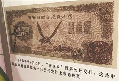 他示意记者去阅读墙壁上当年当日《深圳特区报》的刊文,及当时“深宝安”和“小飞乐”的股票样本,称“深宝安”于1983年7月8日公开招股,而“小飞乐”是1984年11月18日。