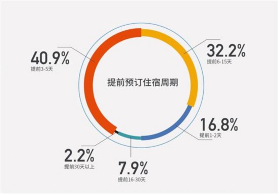 佛系出行方式的热度已然呈下降趋势,途家最新数据显示,97.4%民宿用户人群出行会提前预订住宿地点,其中行前3-5天预订住宿地点的人群占比最高,达到40.9%。