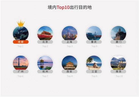 2018年上半年,国内最热出行目的地TOP10城市中仍然主要为一二线城市,其中成都再次蝉联榜首。在2017年和2018年的五一、端午等假期中,成都都是国内旅游爱好者的首选。广州、杭州、西安同比增速超4倍,为TOP10城市中增速最高。国内TOP 10城市排名为:成都、北京、上海、重庆、厦门、广州、杭州、西安、三亚、南京。