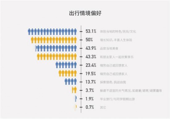 “体验当地特色/民俗/文化” 是出行人群的主要出行情境求