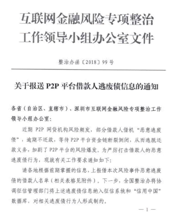 以下为《关于报送P2P平台借款人逃废债信息的通知》全文