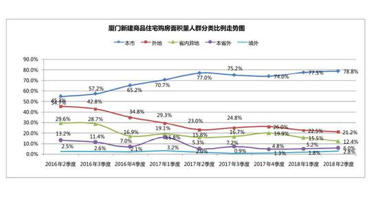 2016年限购以前,厦门有近7成购房者是外地人,但从最新的数据可以看到,购房者比例已经发生完全逆转,异地购房者被拒之门外,楼市基本靠本地需求支撑,这就是限购导向下的楼市。