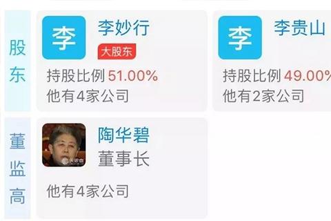 2014年,老干妈投资人信息变更,创始人陶华碧从股东名单中删除,两个儿子李妙行和李贵山分别持有公司51%和49%的股份,一个负责生产,一个负责市场,而陶华碧仍为公司的董事长。