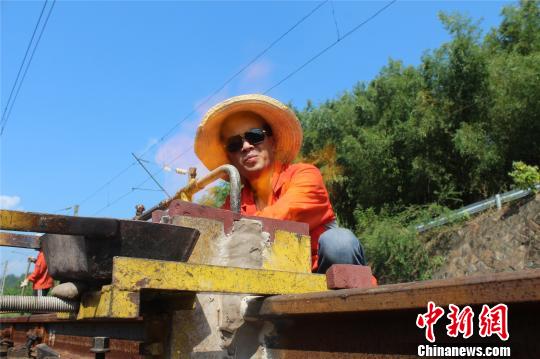 铁路职工顶着酷暑,高温作业 邬倔林 摄