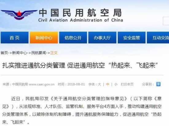 中国民航局运输司副司长于彪,在昨天的新闻发布会上,就民航局日前出台的《关于通用航空分类管理的指导意见》进行了解读。他表示,这个意见的最大特点是突出了顶层设计,既是对过去两年来民航局通行改革的系统梳理,同时也是对未来工作的具体谋划,《意见》确定了三条原则。