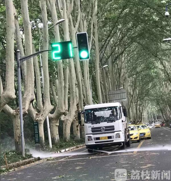 今天(8月13日),受台风“摩羯”影响,钟山风景区行道树产生大量断枝、落叶,陵园大道、植物园路等主要大路路面及路边绿篱、地被上都被法桐的落叶和枝条覆盖,影响车辆通行。