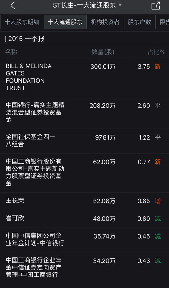 2015年一季报显示,“时节好雨”信托计划和吴宝江选择清仓套现,崔可欣仍有48万股。