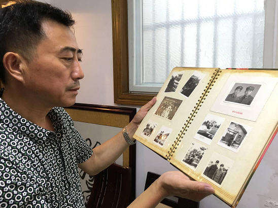 图为荀为民在翻看老相册。