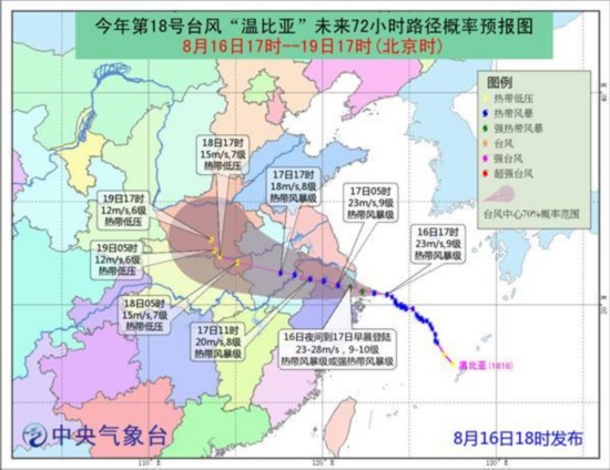 中央气象台预计,今年第18号台风“温比亚”将于16日夜间到17日早晨在浙江象山到上海一带沿海登陆。继“安比”、“云雀”、“摩羯”之后,苏浙沪地区将遭遇台风“四连击”,成为历史同期台风登陆“包邮区”最多的一年。同时,“温比亚”也将是今年第8个登陆我国的台风,常年全年平均登陆数量为7个,今年台风登陆个数即将“超标”。