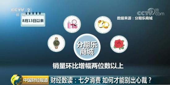 本周以来,某网上商城的名表、美妆、珠宝、鲜花等销量环比增幅两位数以上,创下了近几个月来的小高峰。分期买礼物人群集中在18-25岁之间。