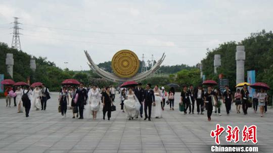 中新网南宁8月16日电 (苏纪云)“我们在高铁上相识,又通过高铁不断拉近了彼此的距离,今天能够和这位‘月老’一起拍婚纱,算是圆了我们的心愿”,参加活动的市民罗先生说罢便挽起爱人的手,摆起了又一个甜蜜造型。