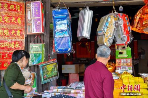 资料图:商家正在出售冥钱冥币等祭祀物品。中新社记者 骆云飞 摄