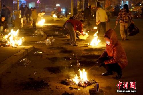 资料图:沈阳市民在街边烧纸。 中新社记者 孙昊声 摄
