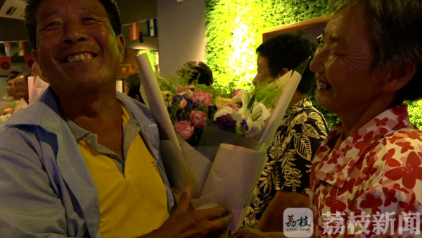 晚上7点,一辆中巴车将十四位失独老人从乡镇接到了县城,在爱心儿女们的搀扶下,老人们牵手走进了一家私人影院,在影院的大厅里,摆满了准备好的鲜花和糕点。爱心儿女们将鲜花送到失独老人的手中,接过鲜花,老人们露出了开心的笑容。失独老人张海琳、孟红霞激动地告诉记者,和老伴生活了这么多年,还是第一次收到老公送的鲜花,心里很是高兴。主办这次活动的响水县工商联副主席顾艳告诉记者,七夕原本是年轻人的节日,但这些老人因为意外的原因,让他们过早失去了儿女,生活过得很寂寞辛苦。今天举办这个活动,就是要让他们感受一下温暖的气氛,感受到社会还在关注、关爱他们。