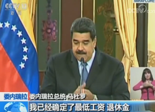 委内瑞拉总统 马杜罗: 在“石油币”这个系统的基础上,我已经确定了最低工资、退休金,以及以半个“石油币”作为工资基准,也就是1800玻利瓦尔。