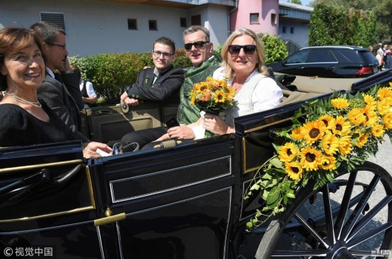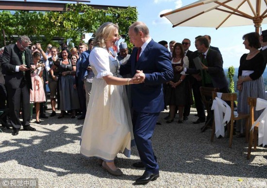 当地时间2018年8月18日,普京作为嘉宾出席奥地利女外长卡琳 克奈斯尔的婚礼。