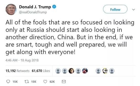 值得注意的是,这些“阴谋论”和“谣言”都很对特朗普的胃口。比如昨天特朗普还曾发布另外一条贴文,指责美国舆论都过于盯着俄罗斯,却忽视了中国对美国的影响。