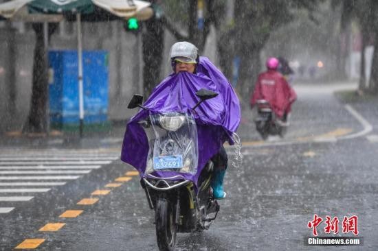 图为市民冒大雨出行。 骆云飞 摄