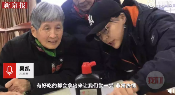 年轻人给老人送去了新鲜和快乐
